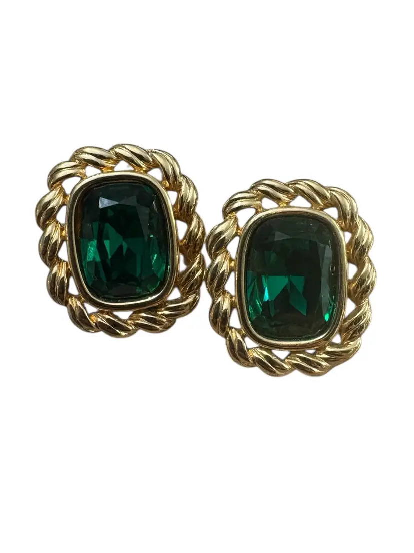Vintage ‘80s Swarovski S.A.L Emerald Crystal And Goldtone Post Earrings