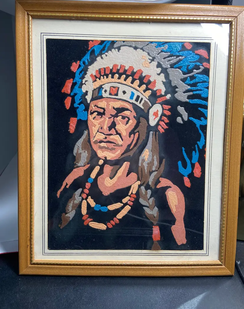 Vintage 9 x 11 Framed Paint by Number on Velvet Native American Chief