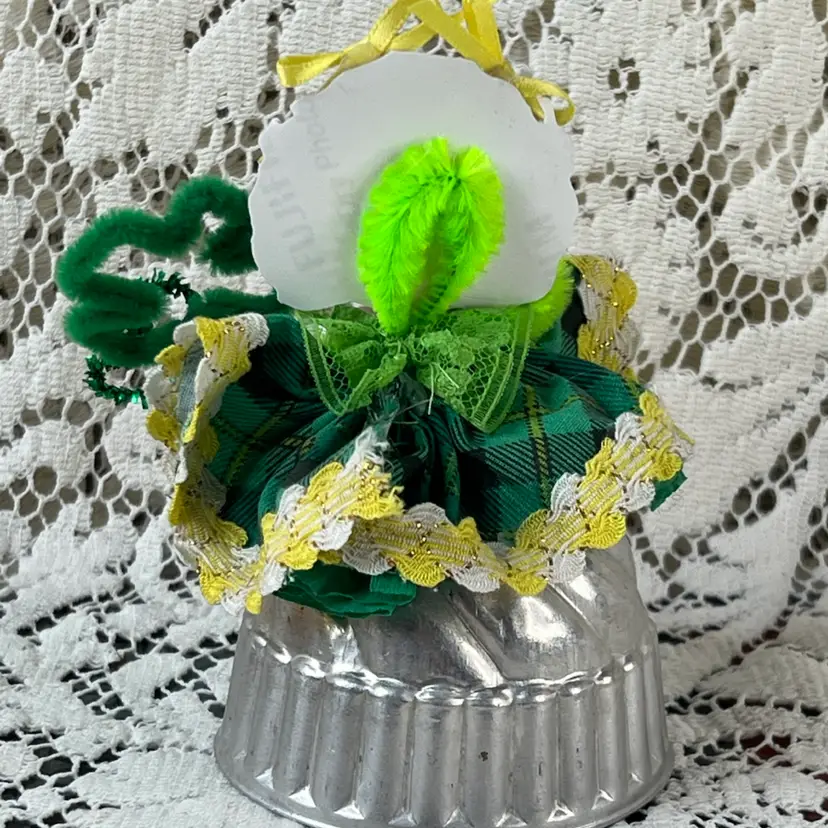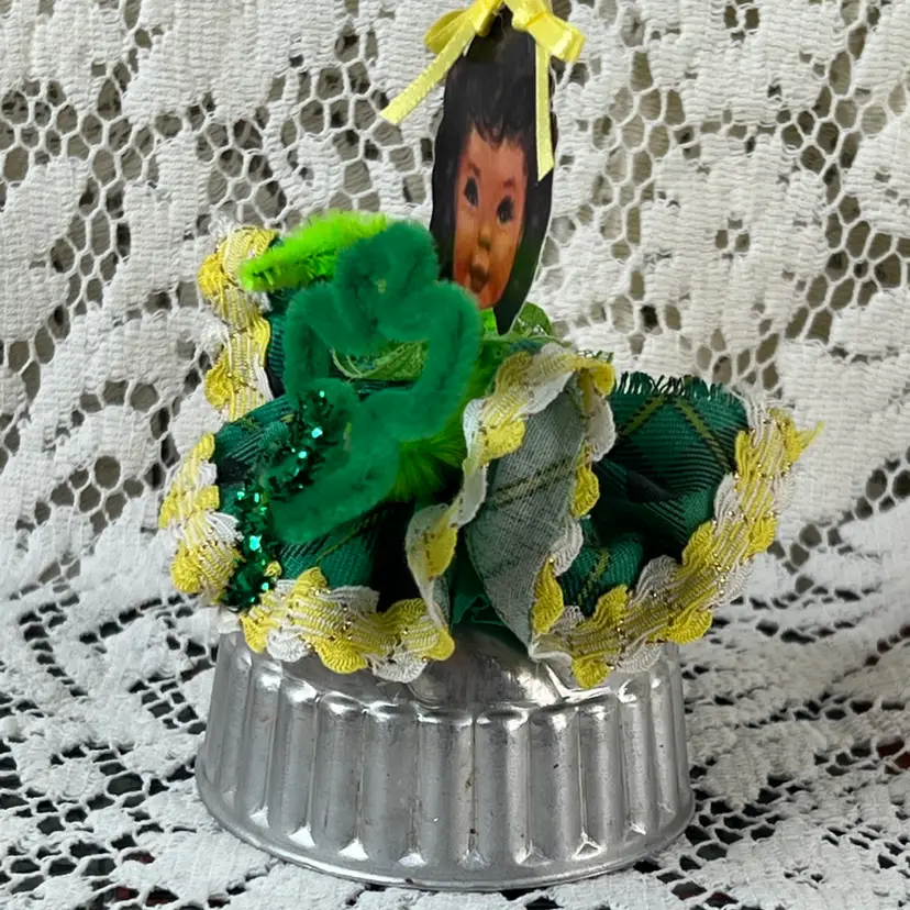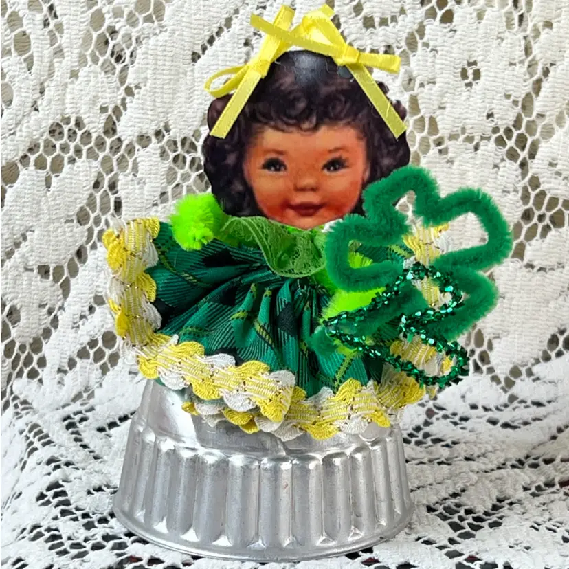 011 Vintage Aluminum Muffin 10 St. Patrick's Day Shamrock Paper Doll Assemblage 5.5 Inches By 4 Inches