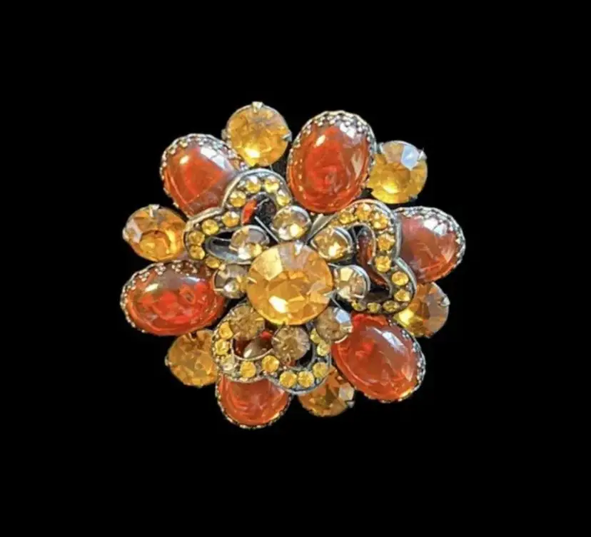 Vintage Estate Amber Cabochon Amber Rhinestone Pin Brooch #D13-2