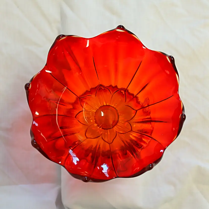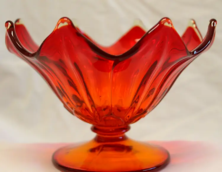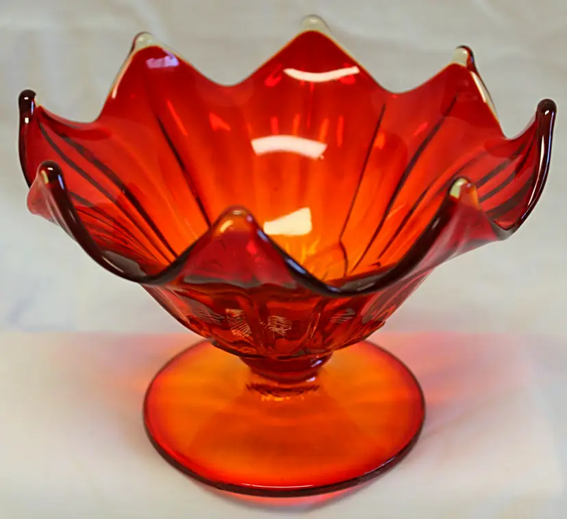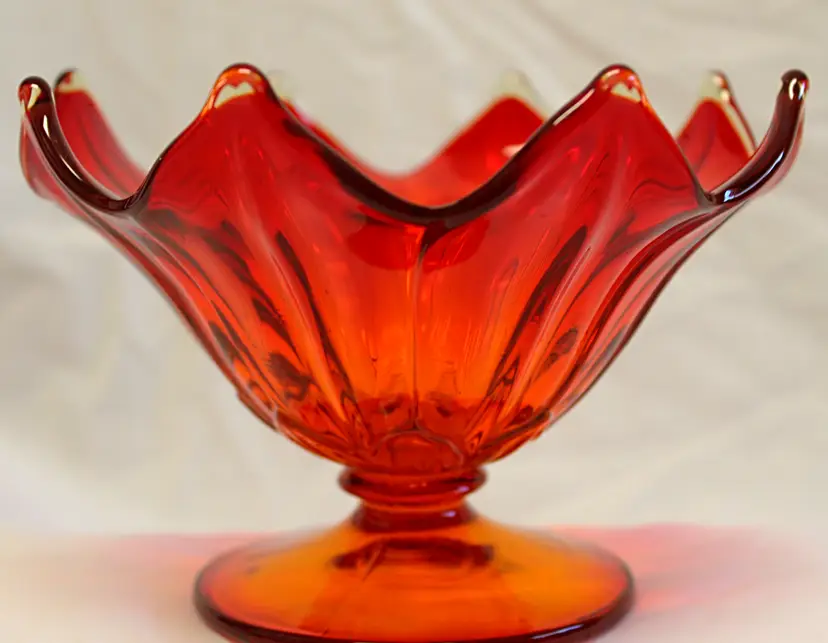 Gorgeous Compote! Stunning by itself, but would look stunning with flowers and greenery. Known for glowing under UV Blacklight because of having Cadmium elements. 4 1/2 ' high x 6 1/4 .
