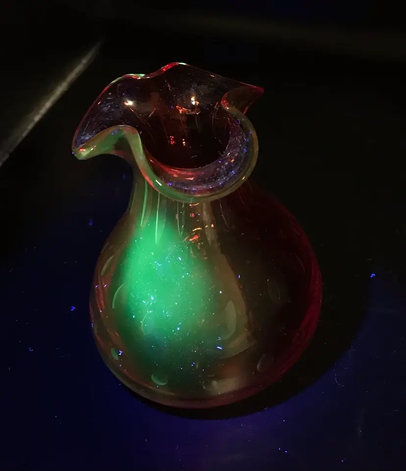 • Measures approximately 3.75" tall • Ruffled edge design for added elegance • Glows under UV light • Durable handcrafted glass construction