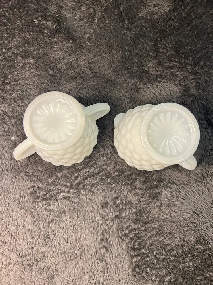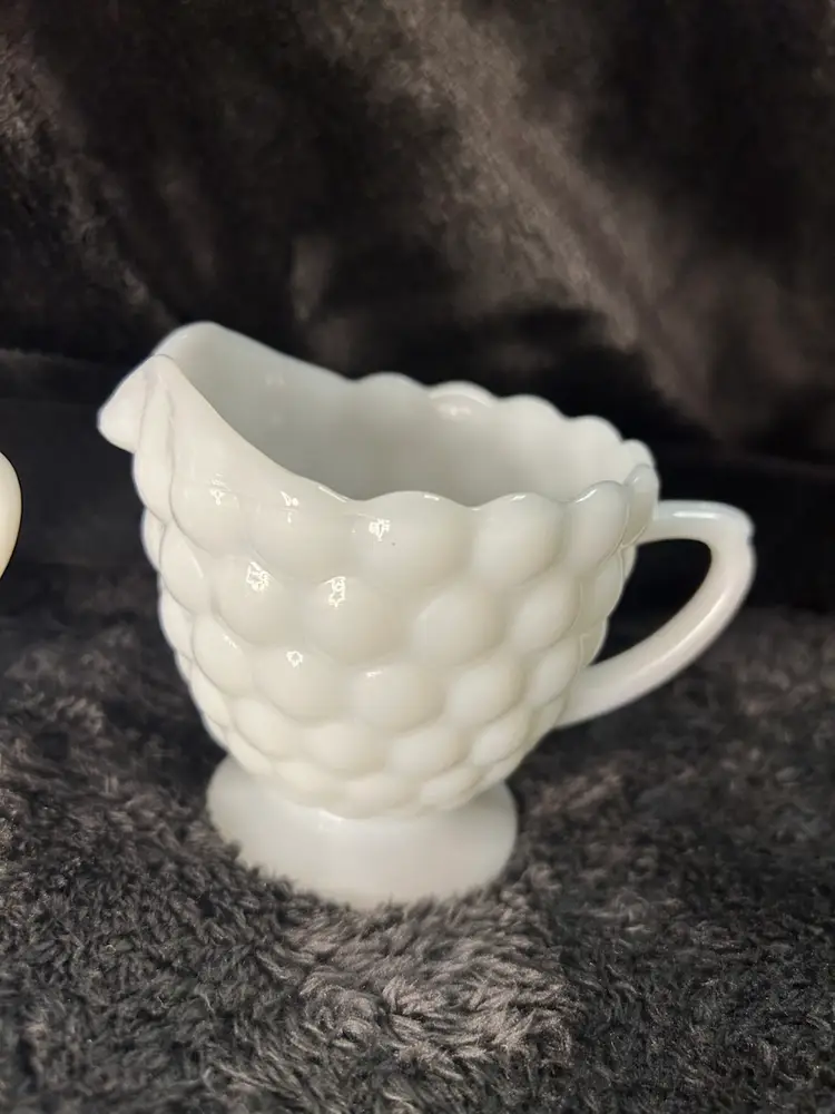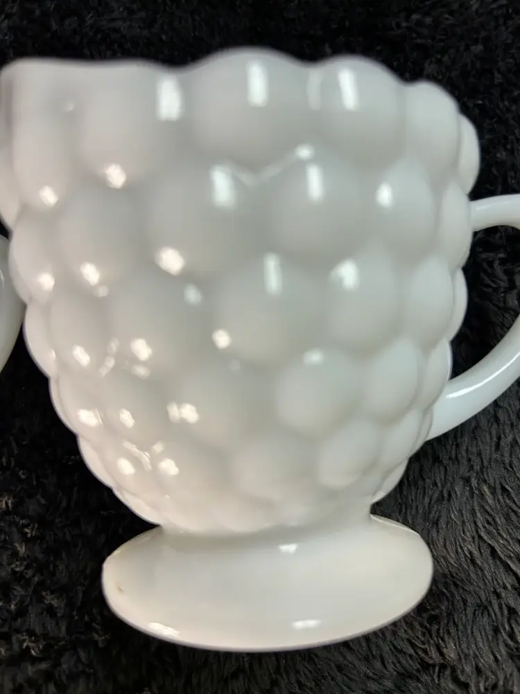 This is a vintage Anchor Hocking Bubble pattern milk glass creamer and open sugar bowl set.
