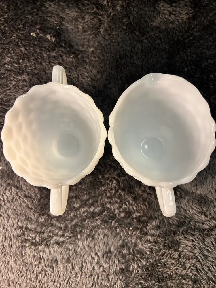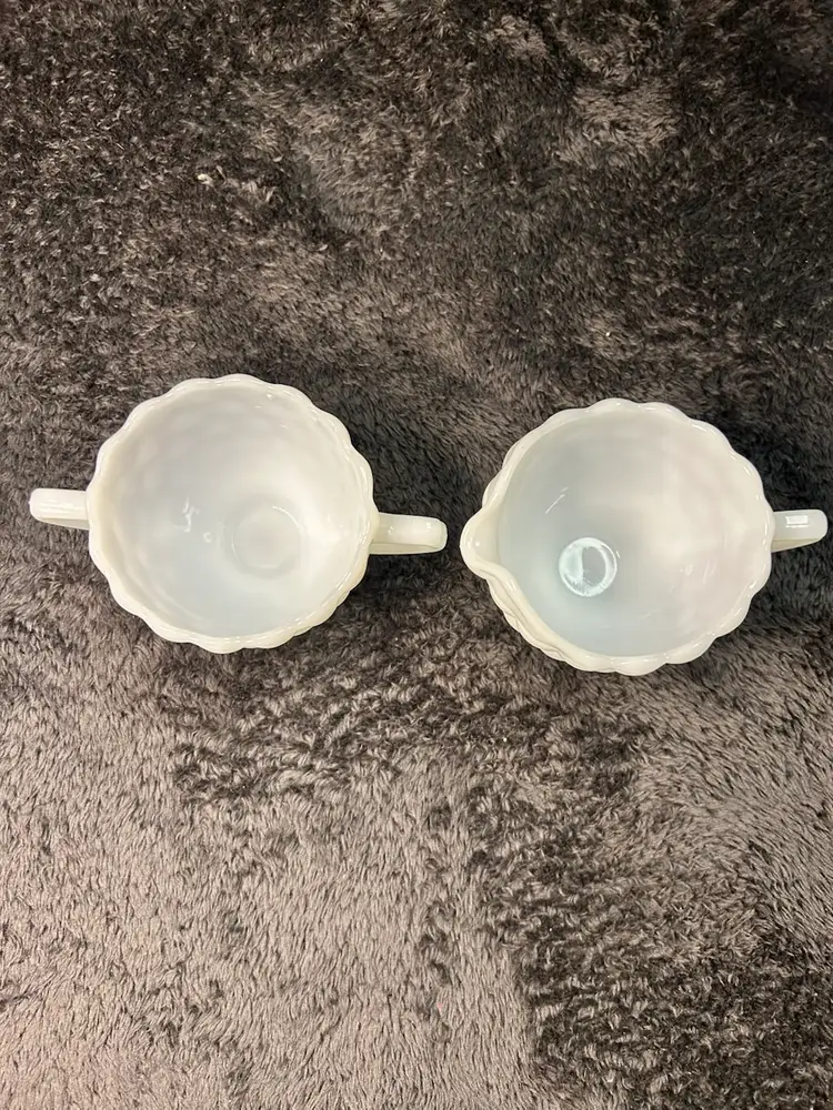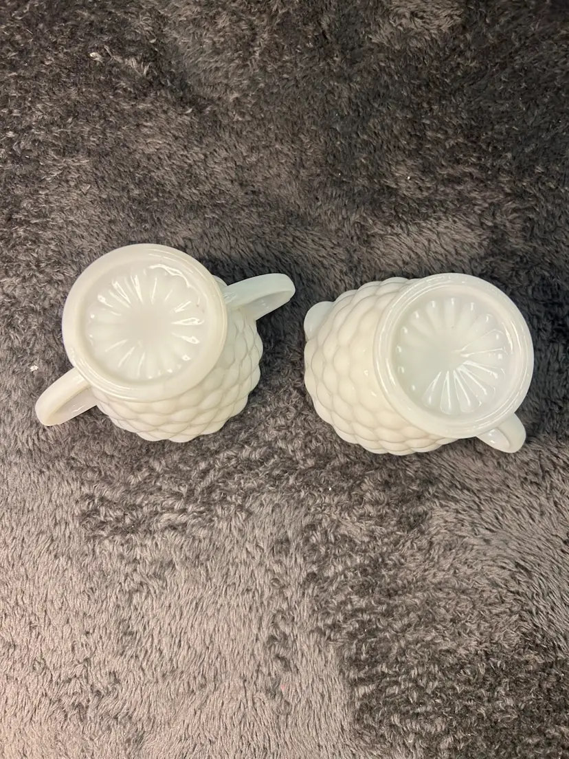 Vintage Anchor Hocking Bubble Milk Glass Cream and Sugar Set
