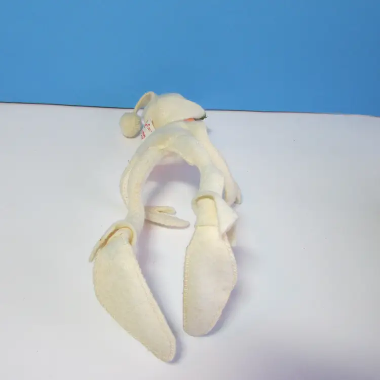 This adorable figure has some wear, a little discoloration around the edges of feet. He is about 11" long when laying flat. This is shipped from a smoke free home. Thanks for looking!