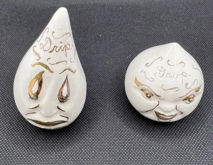 Whimsical Vintage Anthropomorphic 1940s Vallona Starr Drip and Drop Salt and Pepper Shakers, California Pottery
