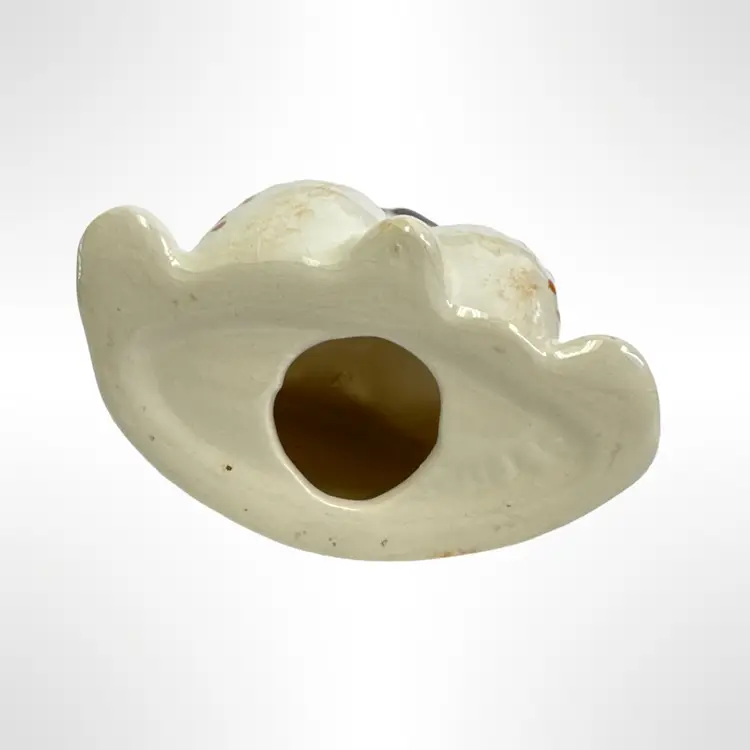 Very cute and nicely done hand painted dog eyeglass holder. No chips or cracks; does have crazing due to age. Measures approx. 4” W x 3” H