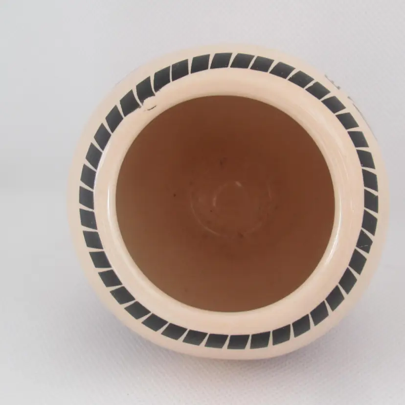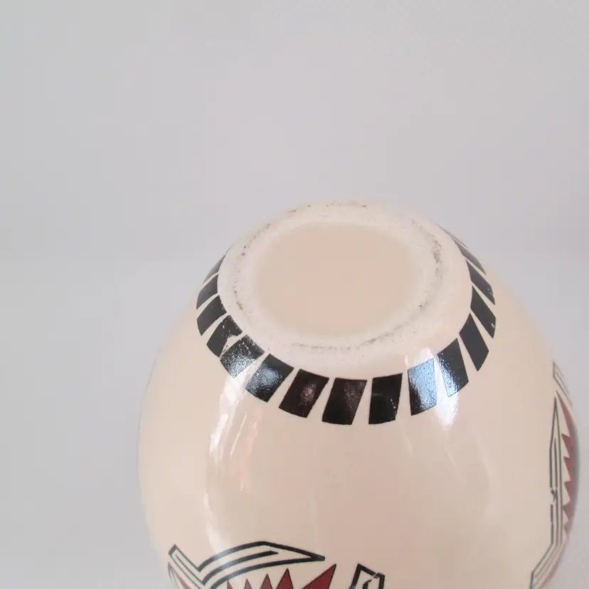 Vintage artisan ceramic pot with Aztec design from central Mexico area. No maker marks. Pot measures 3 1/2" x 3 1/2" x 3 1/2" tall. Lovely Aztec design. There are slight imperfections in finish as this was handmade.