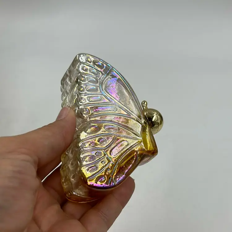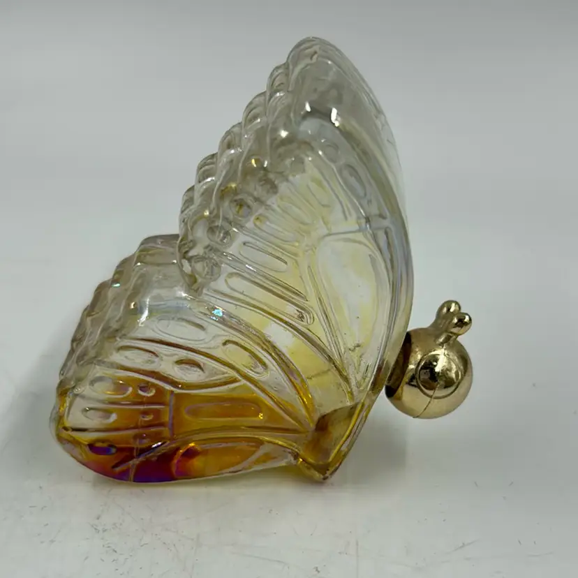 Vintage Avon Glass Butterfly Perfume Bottle With A Iridescent Shimmer. Gold Colored Head Stopper Is Plastic.