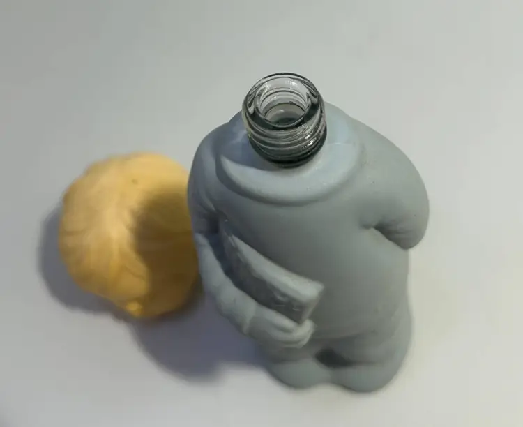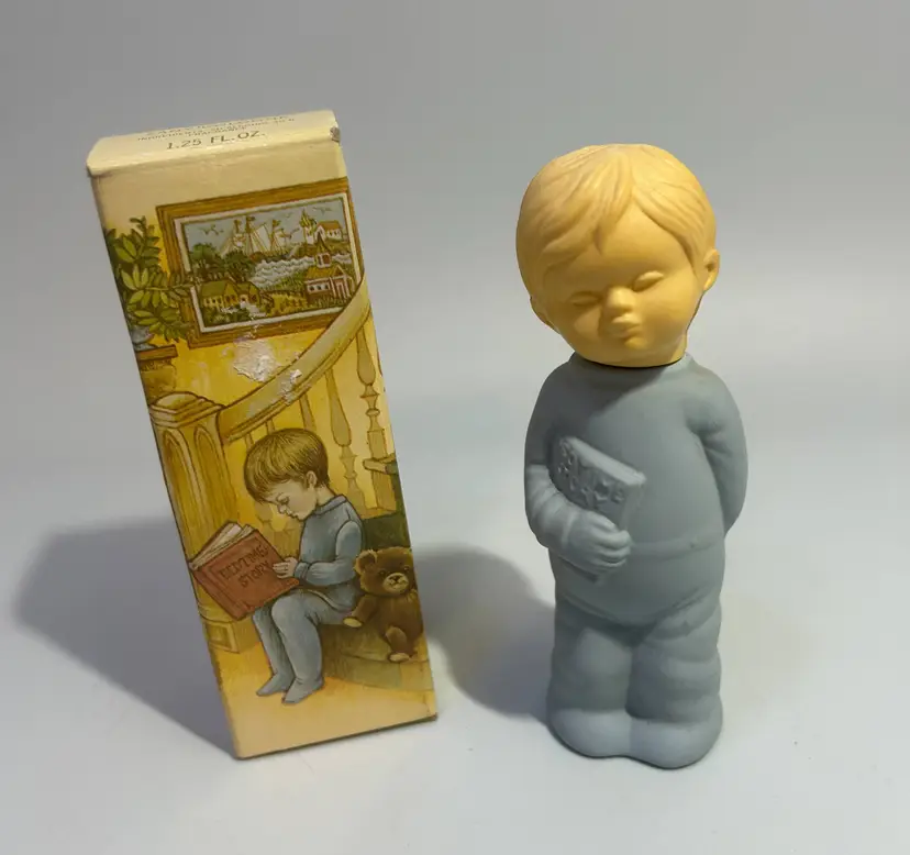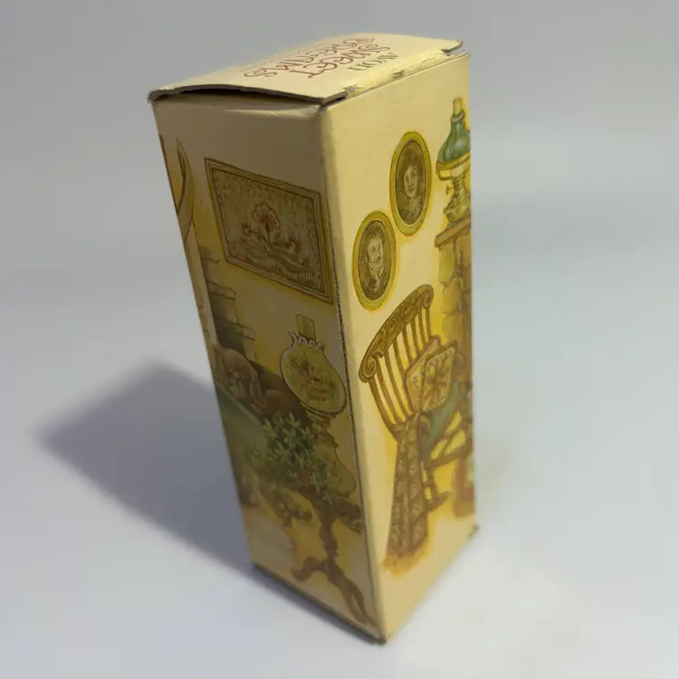No chips or cracks in glass. Plastic head in good condition, no cracks. Bottle is full. Box has common wear due to age and use, worn edges etc.