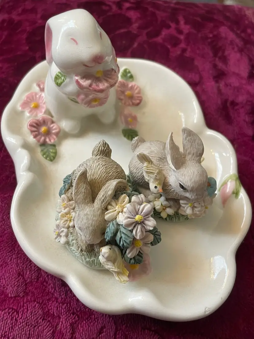 Vintage Avon Trinket Tray With Bunnies