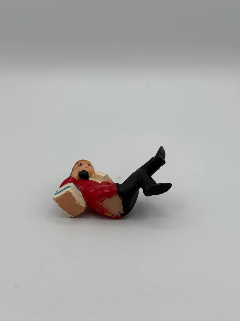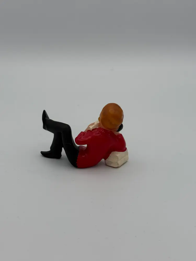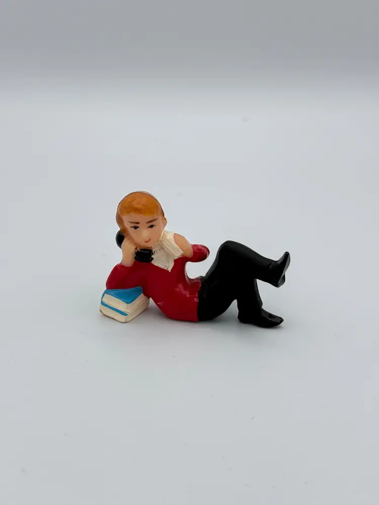Vintage Boy Talking on Black Phone While Leaning on Books. Made by Wilton. Made of Hard Plastic.