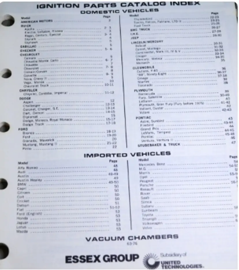 This catalog by Essex Automotive Parts details the ignition parts they had available in 1977 that went back to 1964.