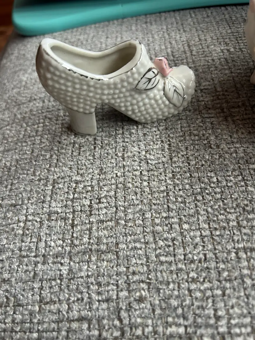 Vintage shoes white ceramic with pink flowers approx 2 inches tall