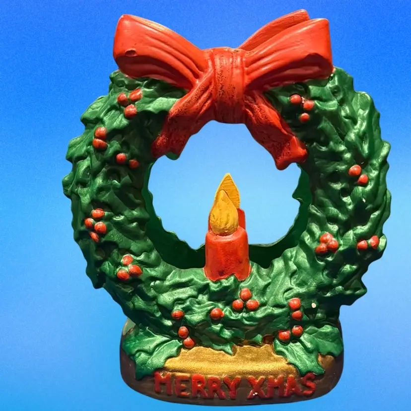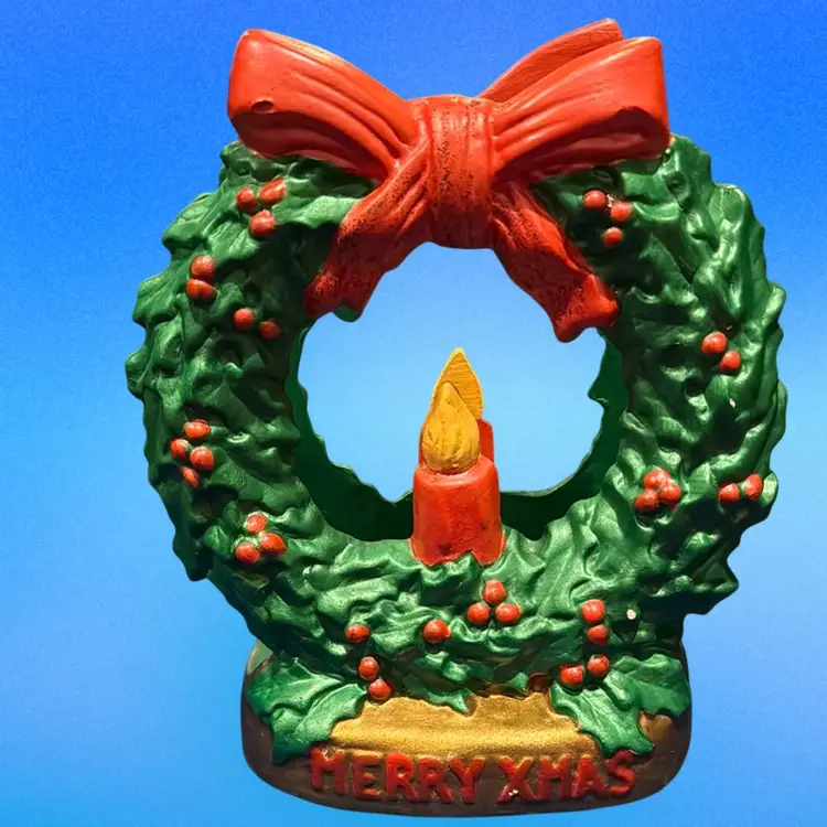 Vintage Christmas Wreath Ceramic Napkin Holder 1987