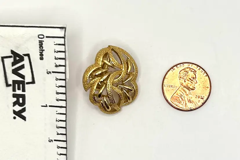 Brooch is 1.75”x 1.5” Earrings are 1” and clip on. Signed. No damage