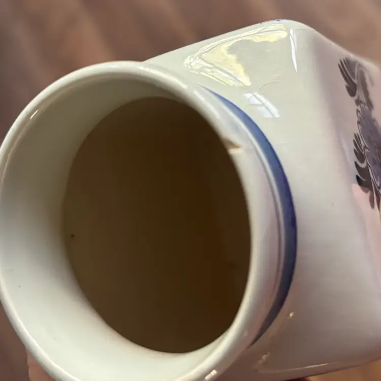 4 1/2”tall x 3”wide Vintage wear as shown- small chip on lip