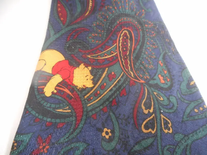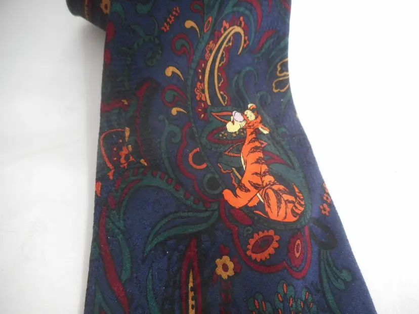Vintage Disney Silk Navy Burgundy Paisley tie Tigger and Pooh necktie