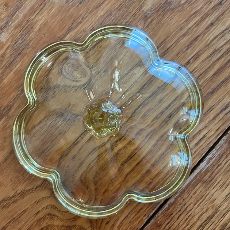 The Canterbury pattern was produced by the Duncan & Miller Glass Company, which later merged with United States Glass Company and eventually became part of Tiffin-Franciscan. This pattern is known for its elegant, often floral or fruit-inspired designs, and was popular during the mid-20th century. The "citron" color, a yellowish-green, is a distinctive hue often associated with this period and manufacturer.
