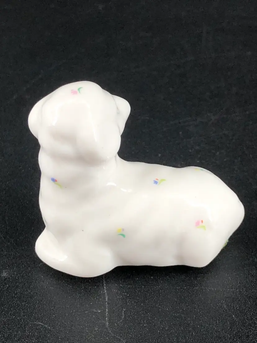 Vintage Enesco Floral Miniature Porcelain Ram Sheep Lamb Figurine