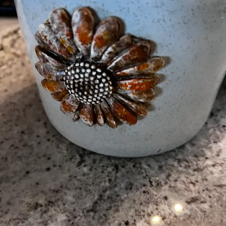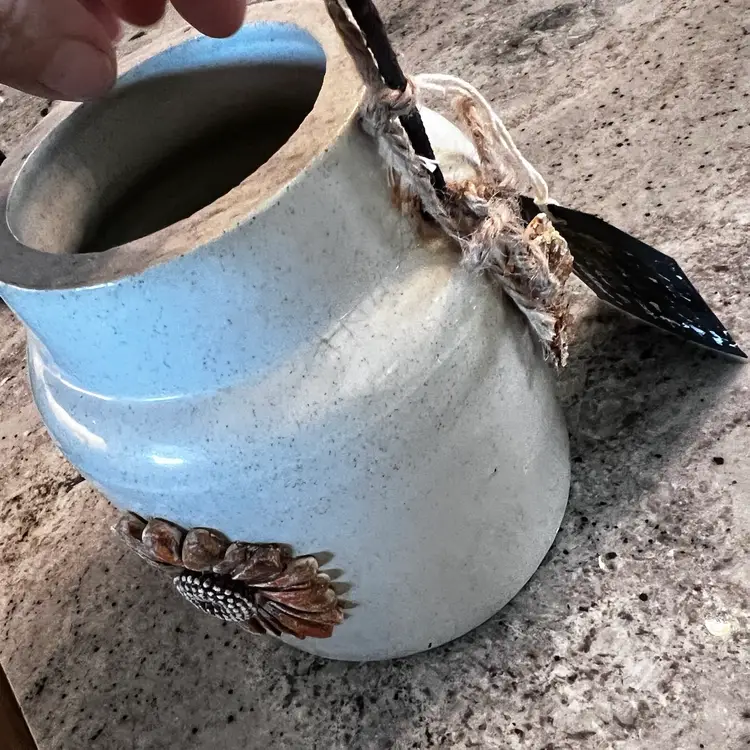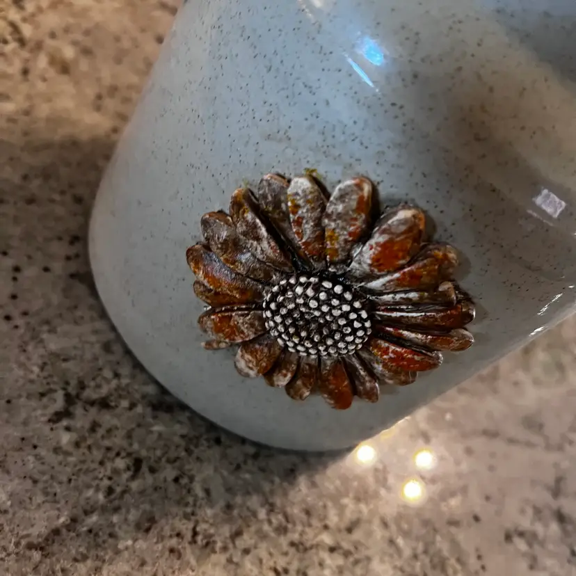 Vintage Farmhouse Rustic Crock Upcycled Sunflower Spring Summer Decor Rustic Primitive Made By Me Drnksuzy OOAK Original