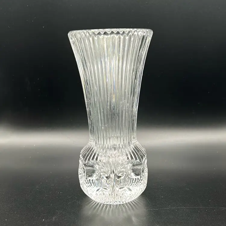 Here we have a vintage Fostoria crystal bud vase in excellent condition. It features the thumbprint Melissa pattern. It stands 5 inches tall and 2 1/4 inches across the opening. There are no chips or cracks.