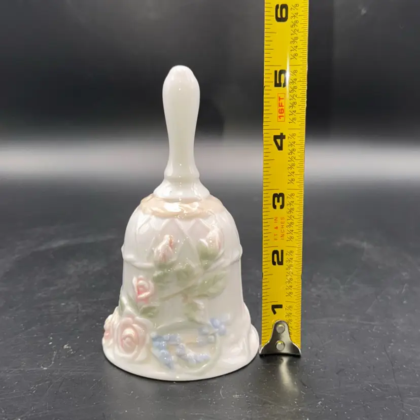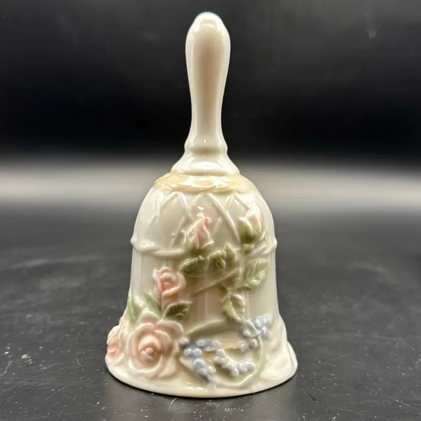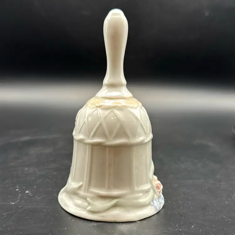 Vintage Glazed Porcelain Floral Cottagecore Bell 5.25”