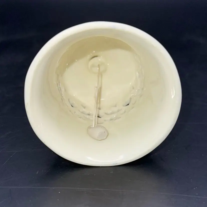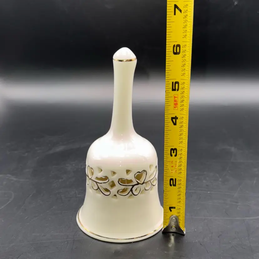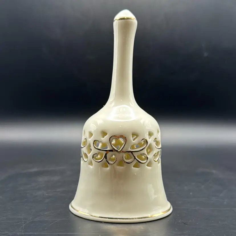 Vintage Glazed Porcelain Pierced Heart Gold Trim Bell 6โ€