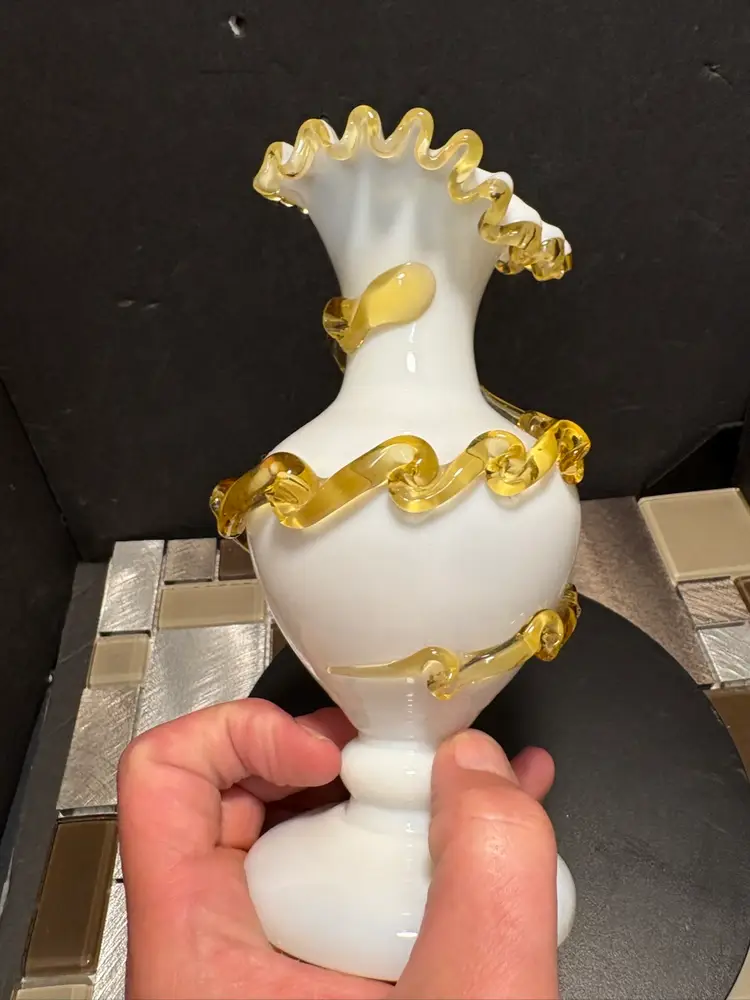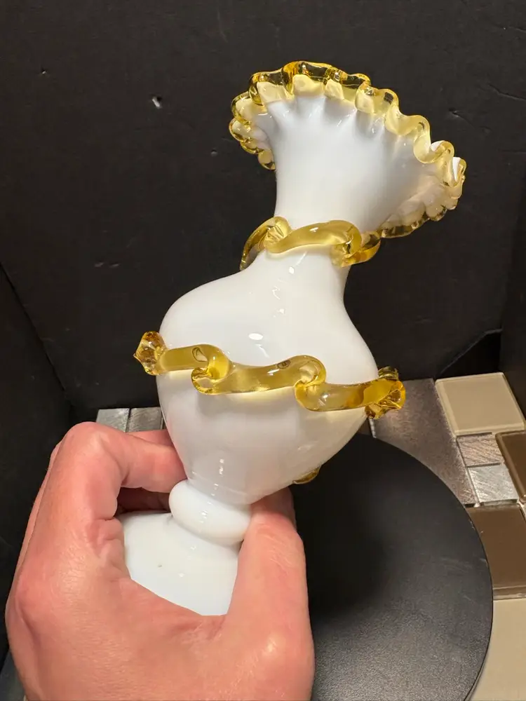 No chips or cracks it’s a cut little piece and the gold crest yellow n white perfect spring color