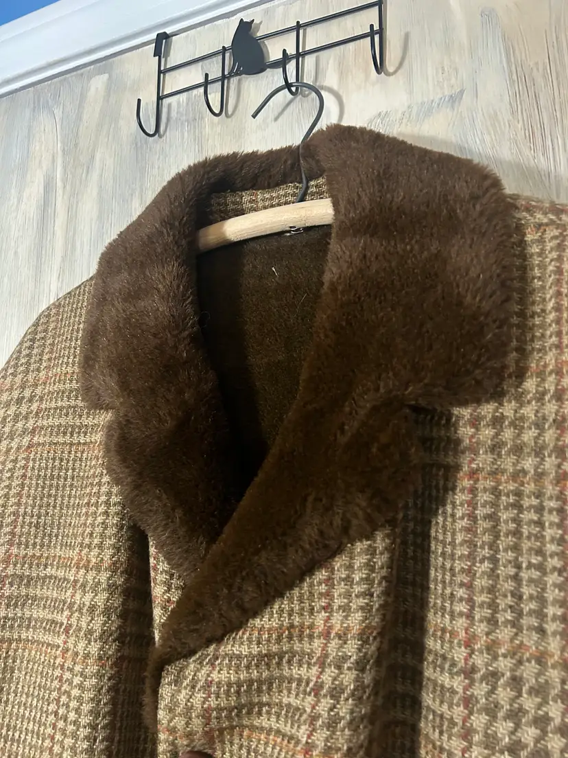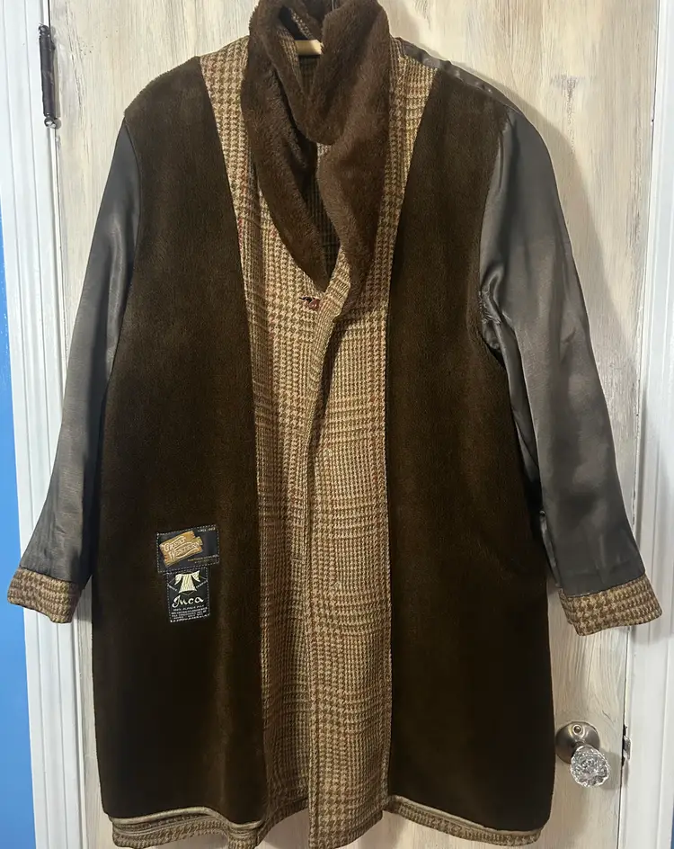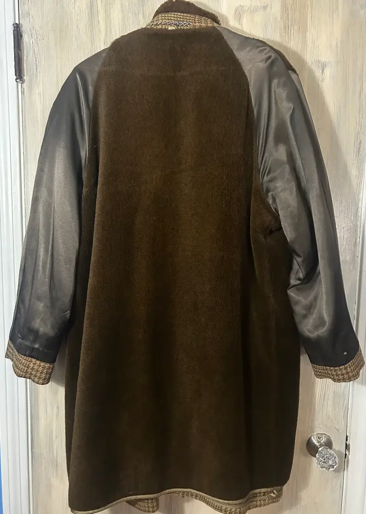 Vintage Great Western Brown Houndstooth Men's Coat with Alpaca Pile XLarge