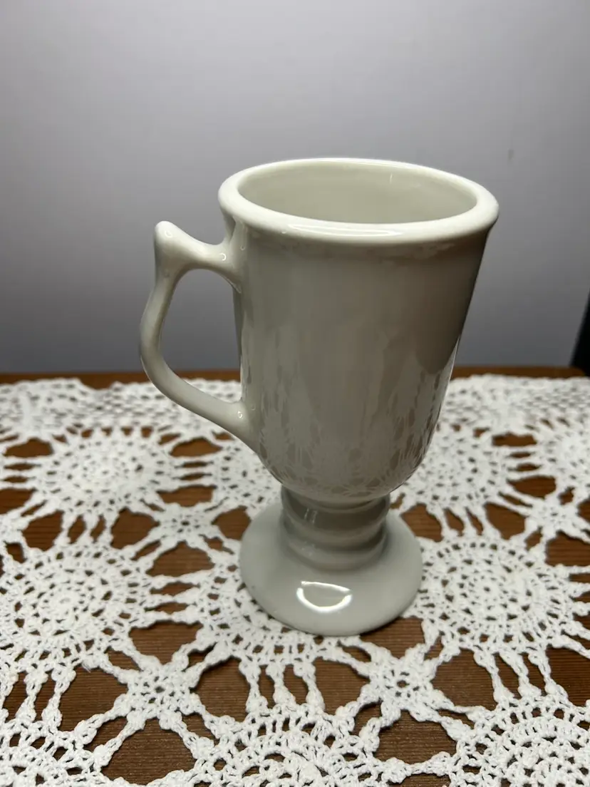 Vintage Hall White Ceramic Pedestal Irish Coffee Mug @ 6 “ Tall