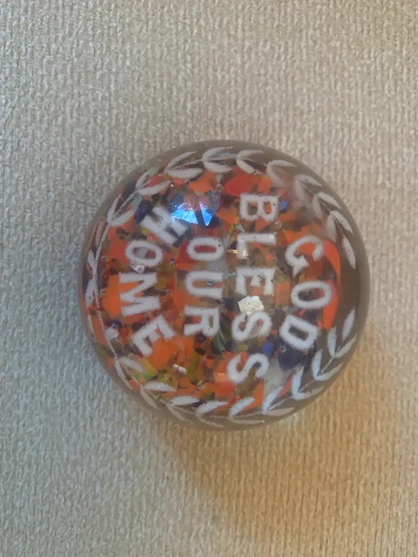 Vintage Hand Blown God Bless Our Home Paper Weight