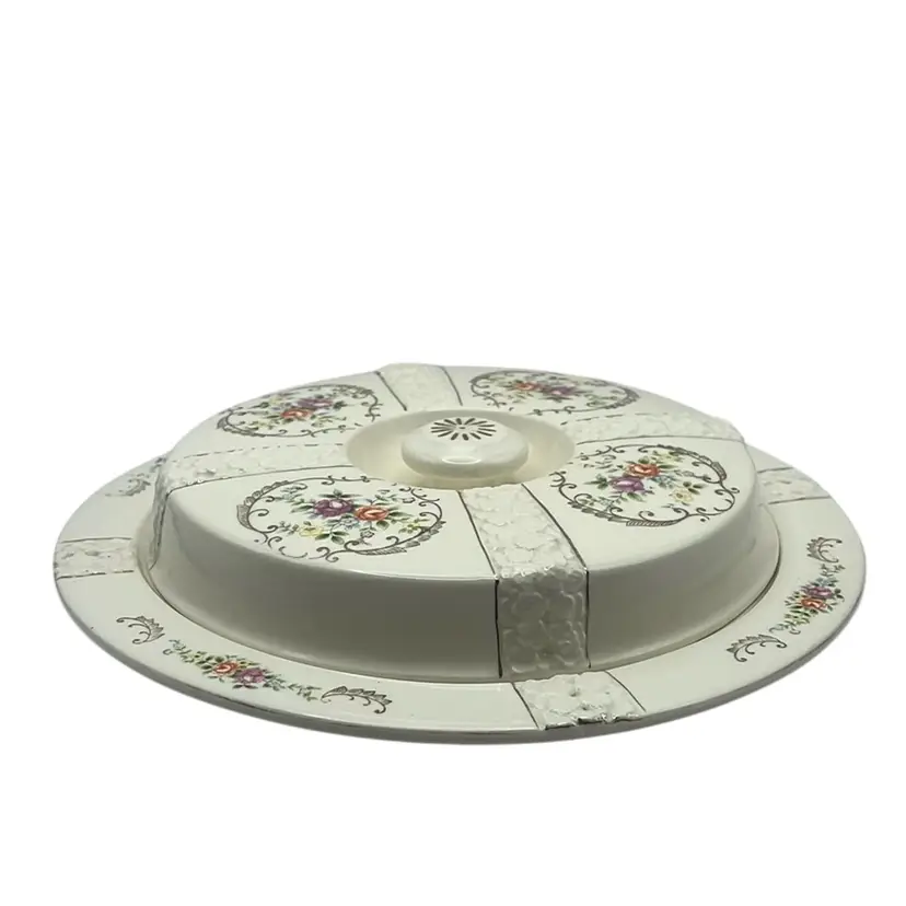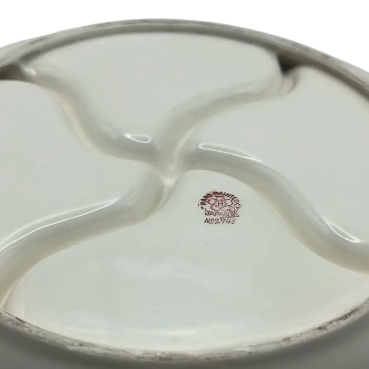 Hand painted with a stunning floral pattern with gold details . Produced by Hotta Yu Shoten from Japan in the 1940’s. 2 small chips on the bottom plate. Otherwise in nice condition for the age.