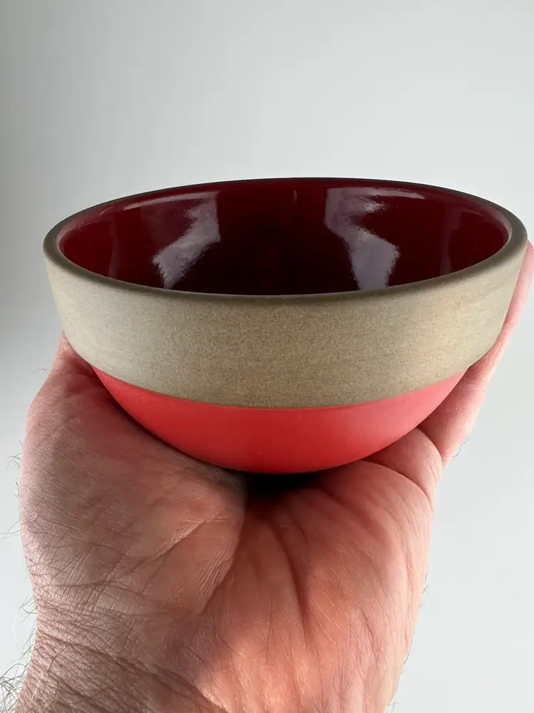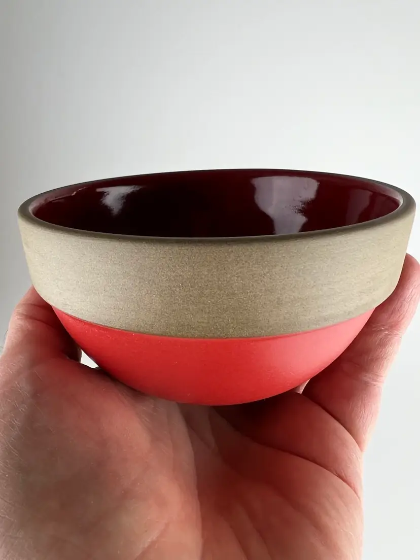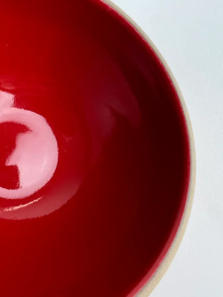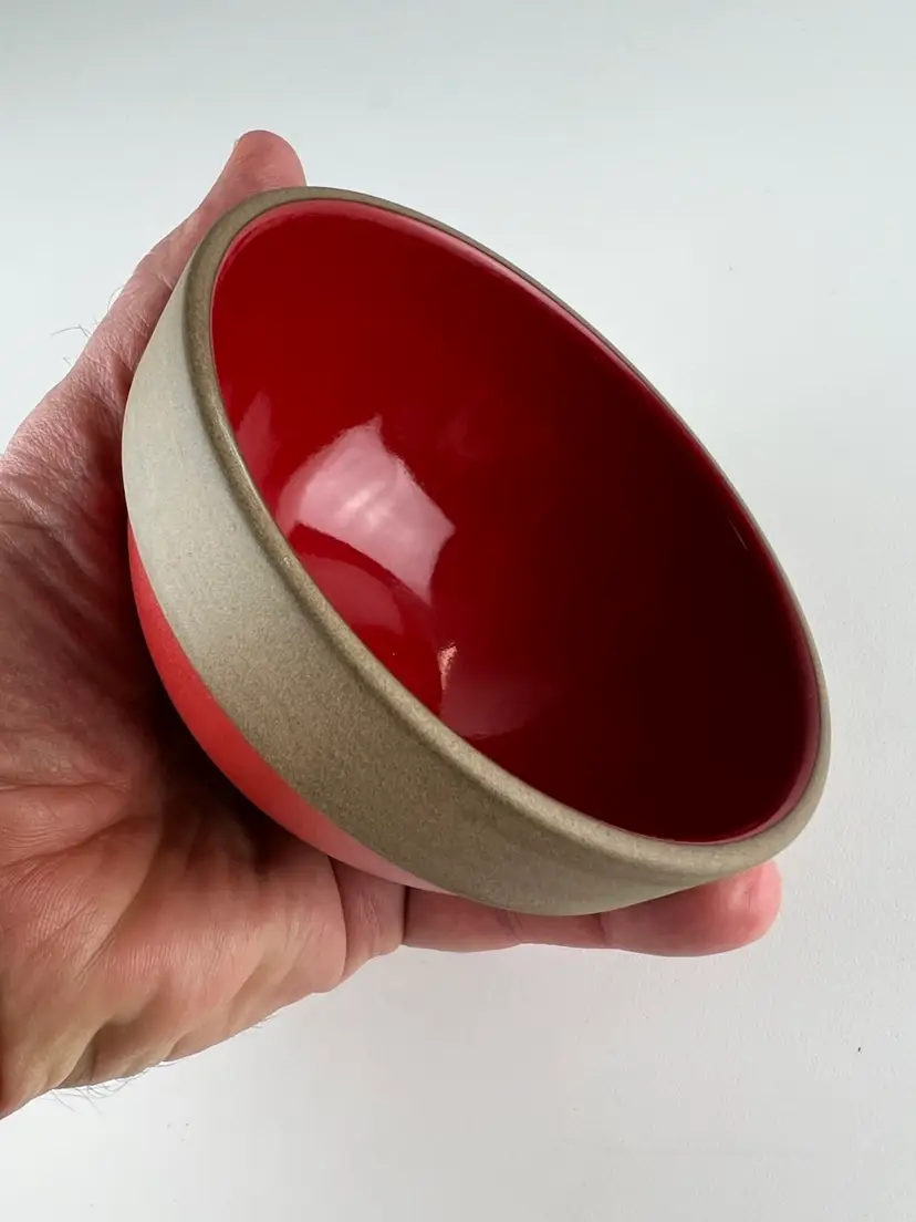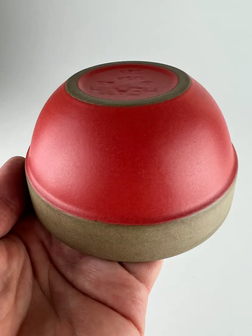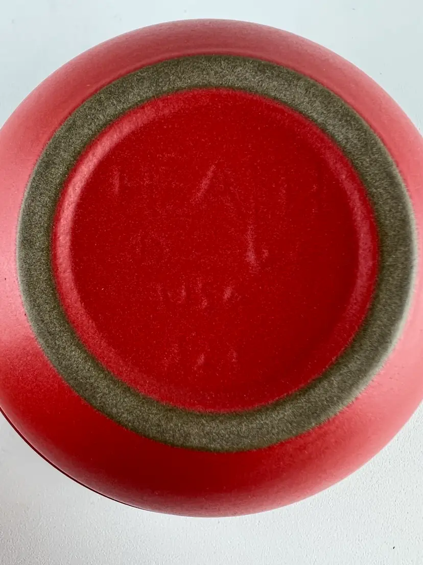 The Charlie B Gallery of Carson City, Nevada is offering this local collection found Heath Pottery bowl. This comes in the hard to find Holiday Red glaze which is shiny on the inside and matt like to the exterior. This has such a great MCM look.