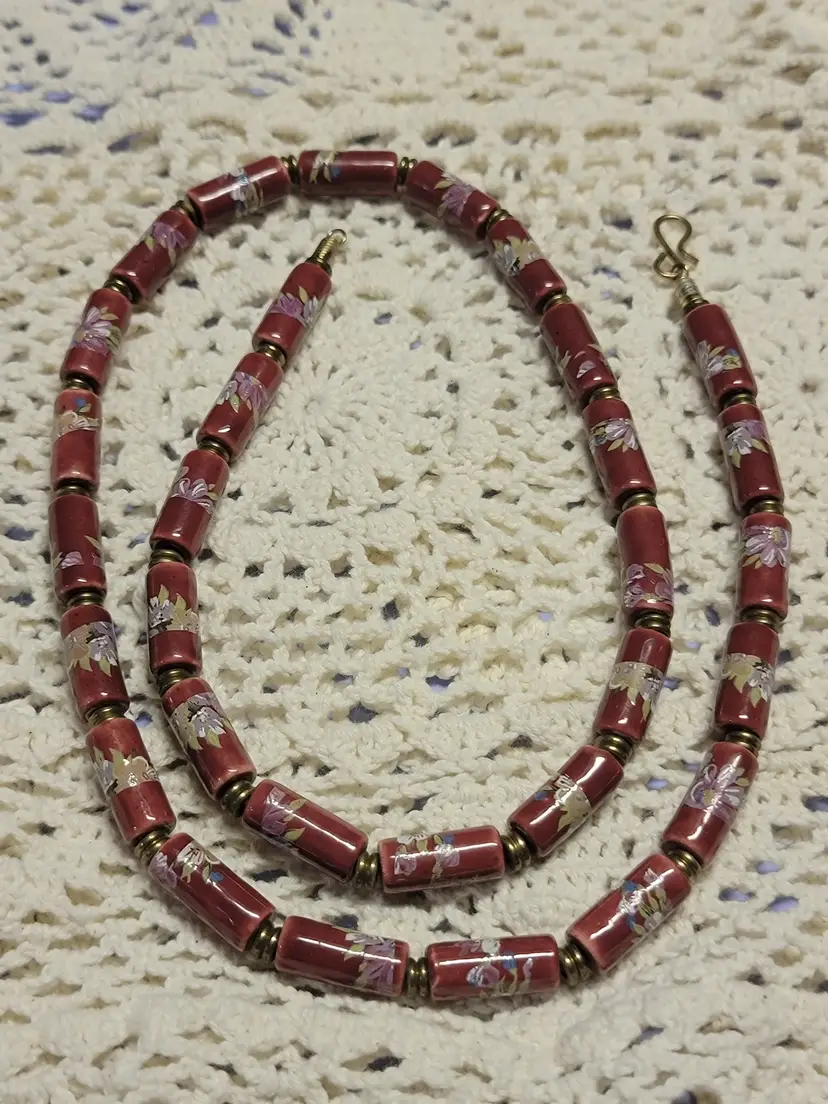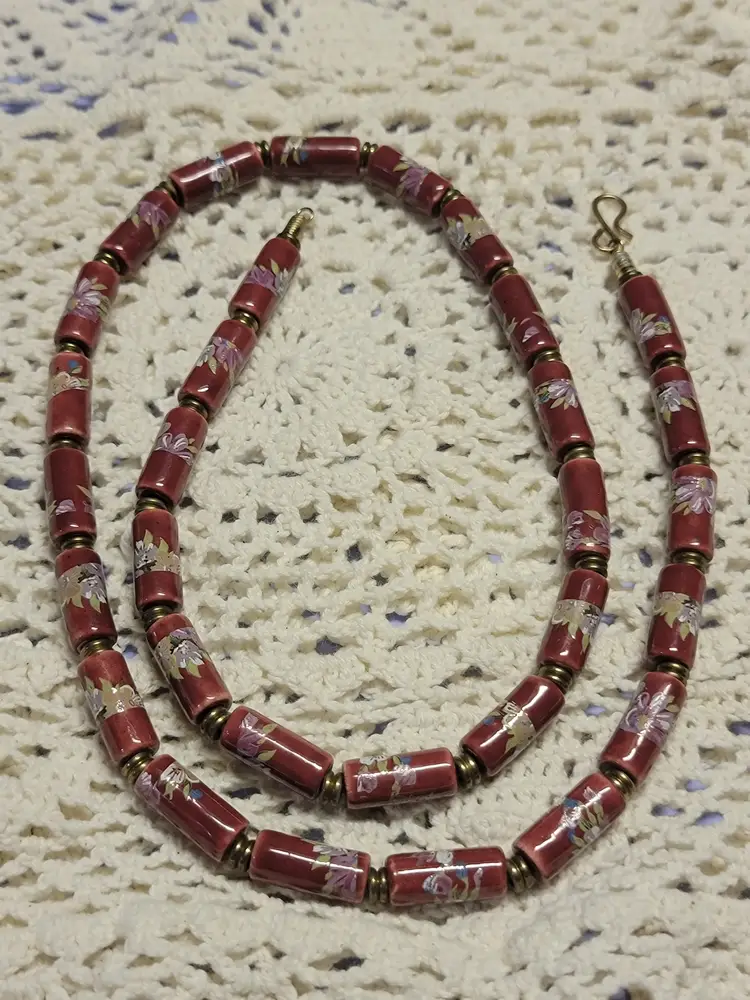 Deep red with painted flowers 28"