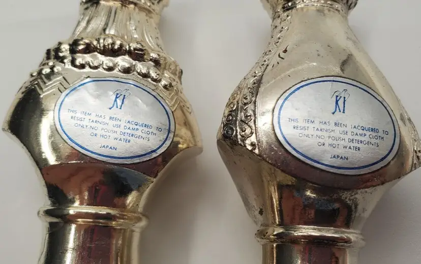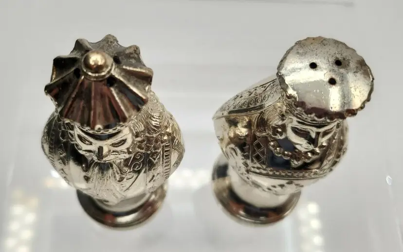 Vintage KI Silver-Plated King & Queen Salt & Pepper Shaker Set Japan 3" Tall