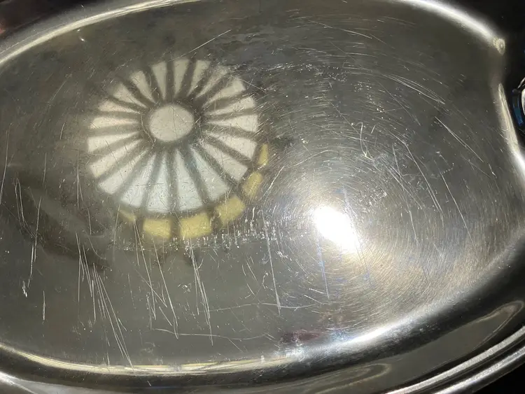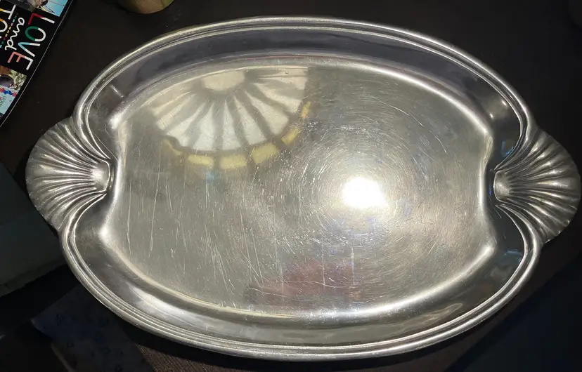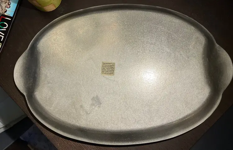 21" by 13 1/2". Wear and scratches. Weighs 5 1/2" lbs before packaging.
