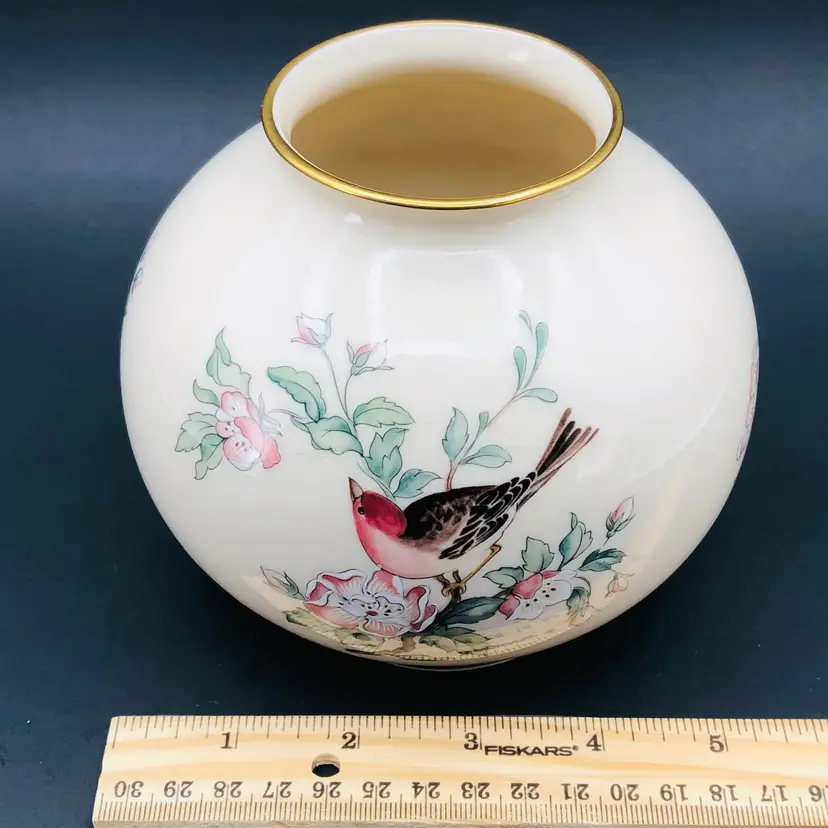 Beautiful Lenox Serenade Collection Rose Bowl. English Country Garden Romantic decor. Birds lovers, this one is for you! 24kt applied gold paint.