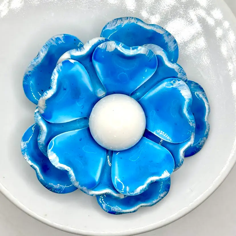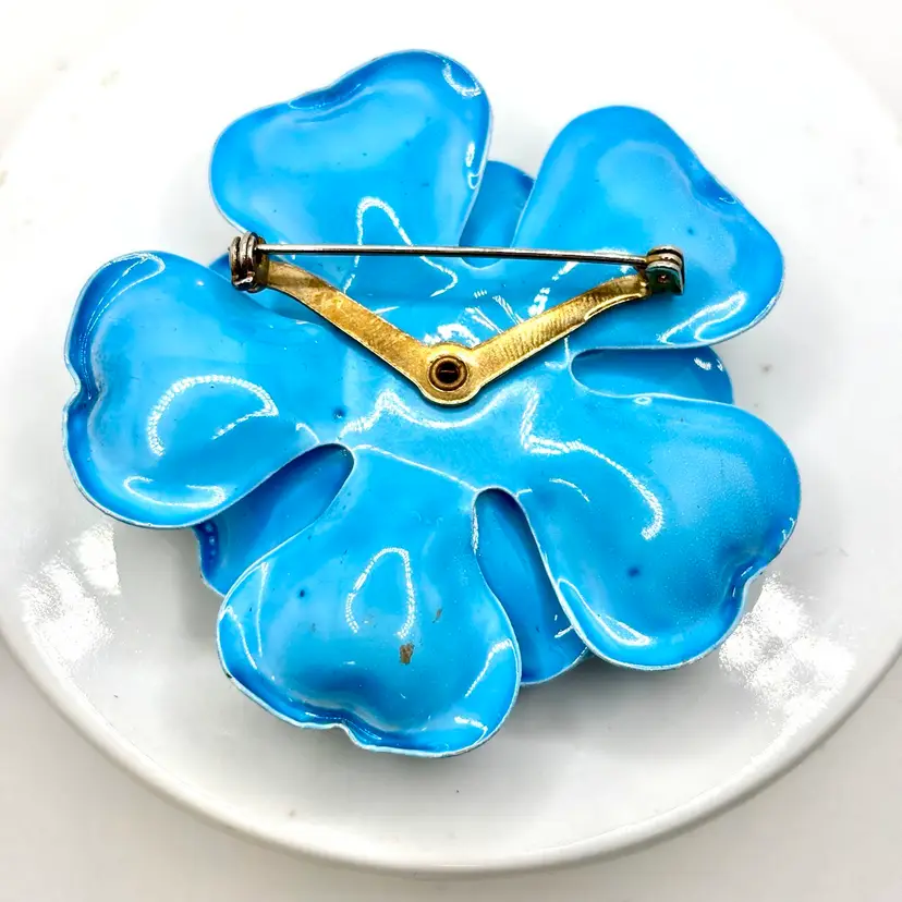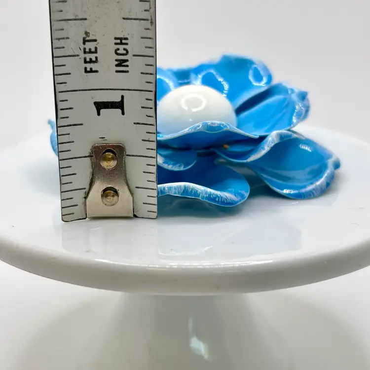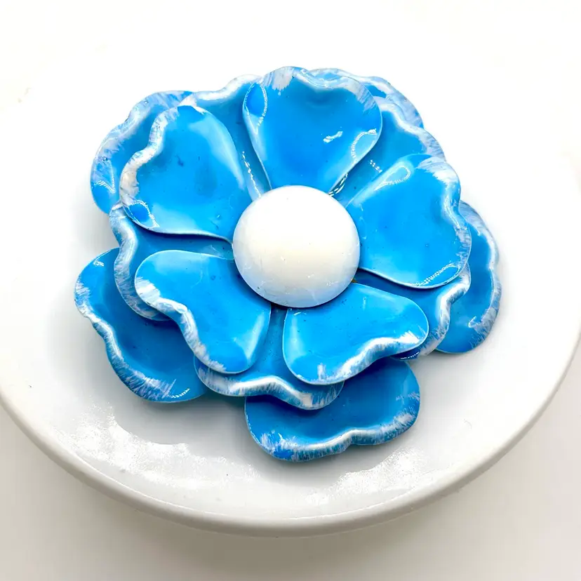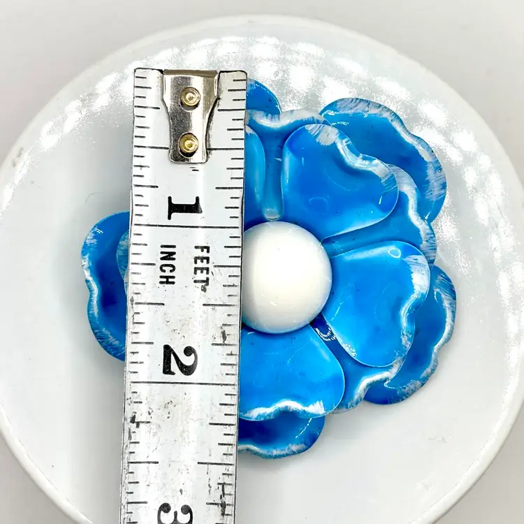 Vintage Light Blue and White Enamel Flower Brooch 2”