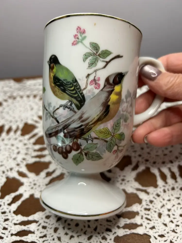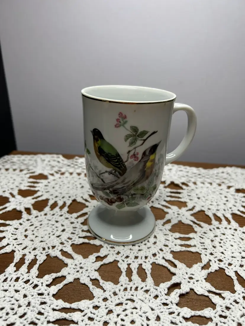 Vintage Made In Japan Porcelain Footed Song Bird @5” Tall Mug