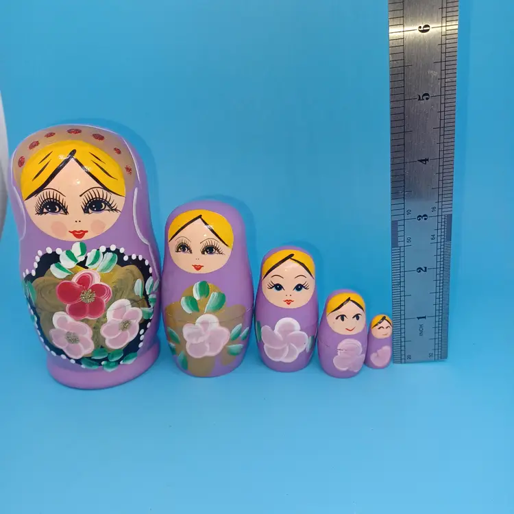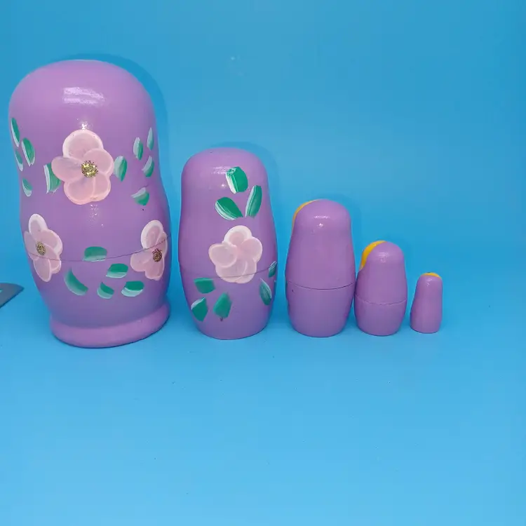 Vintage Matryoshka Russian Nesting Doll 5 piece 5 in Lavender Hand Painted