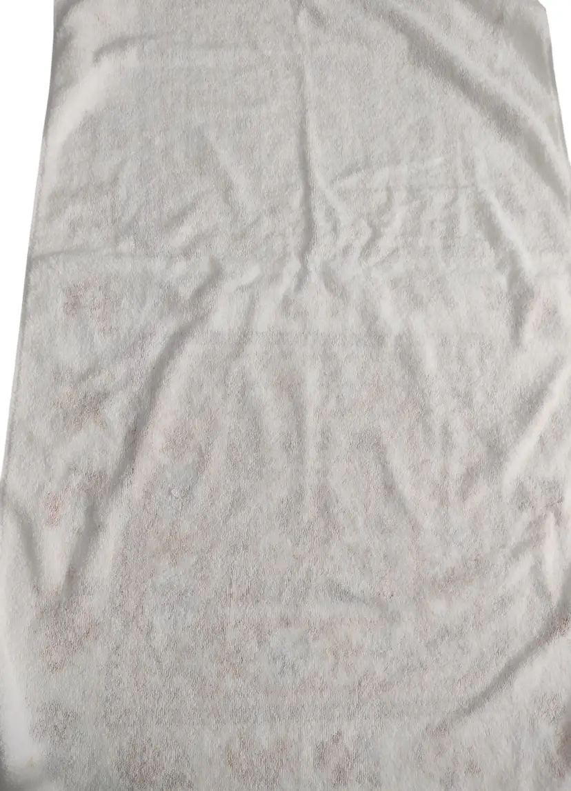 Item are pre-owned and in very good condition with no holes, tears or stains. There is a little more yellowing fringe on one towel, which may have been the one displayed. These don't look to have been washed much, if at all. This more than likely just needs a good wash. These are still soft & vivid. Smoke free environment.
