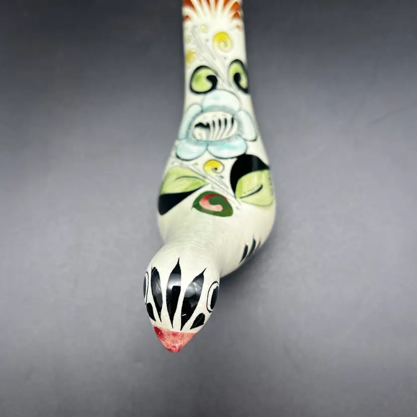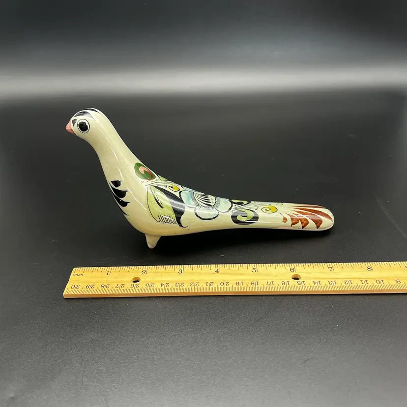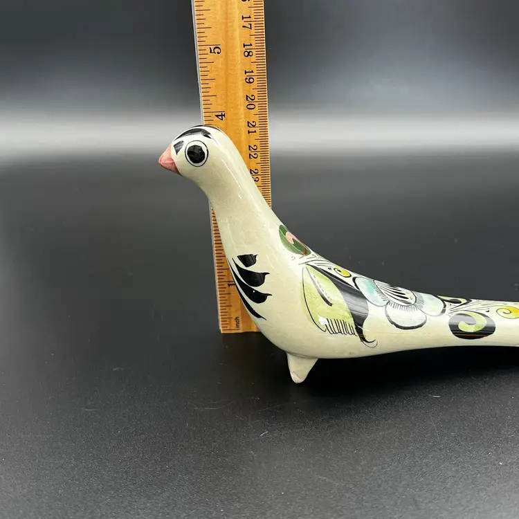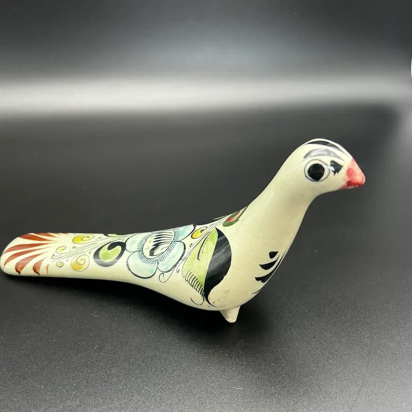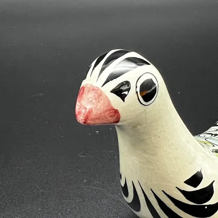 Vintage Mexican Tonala Pottery Hand Painted Stylized Bird Sculpture Folk Art Signed