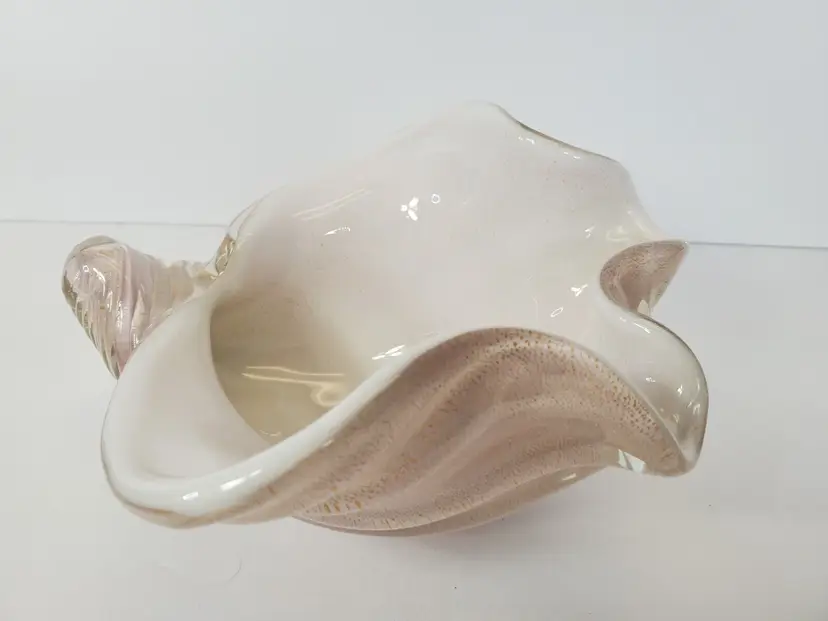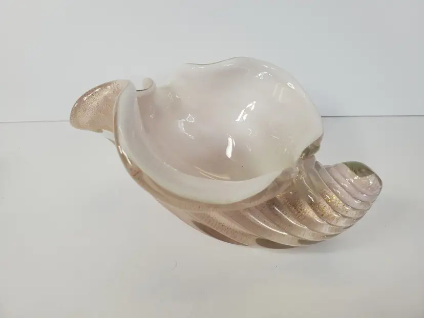 Beautiful Vintage Murano Alfredo Barbini Glass Conch Shell Bowl MCM