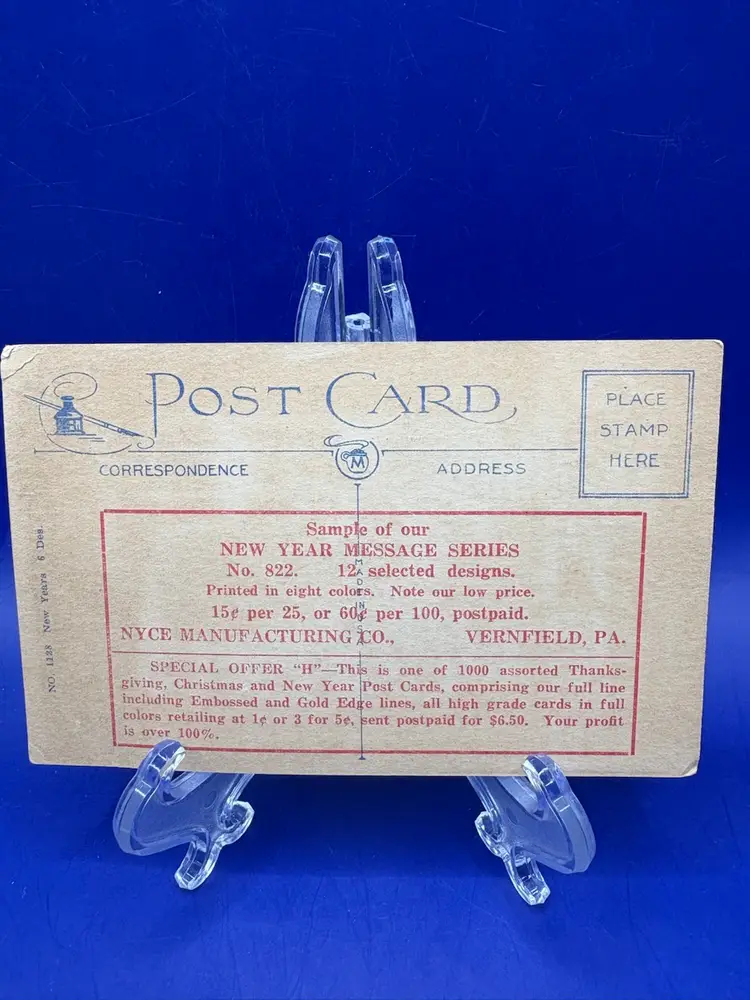 New Year Sample Postcards One is NYCE Co is from 1907 - 1915 This is from Divided Back Era The other is Auburn Post Card Co is from 1901 - 1907 This is from Undivided Back Era