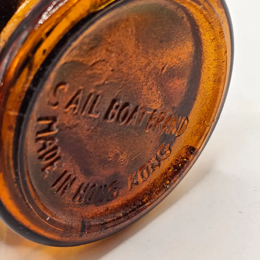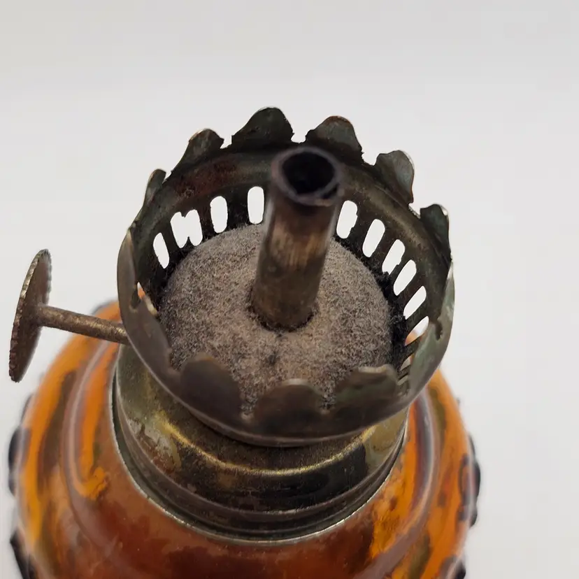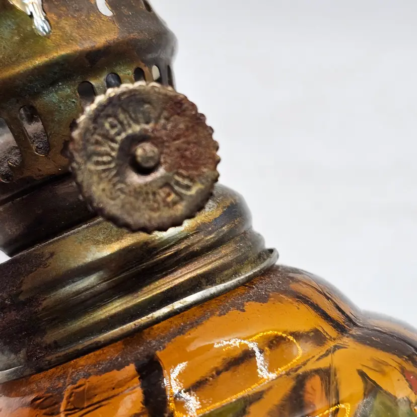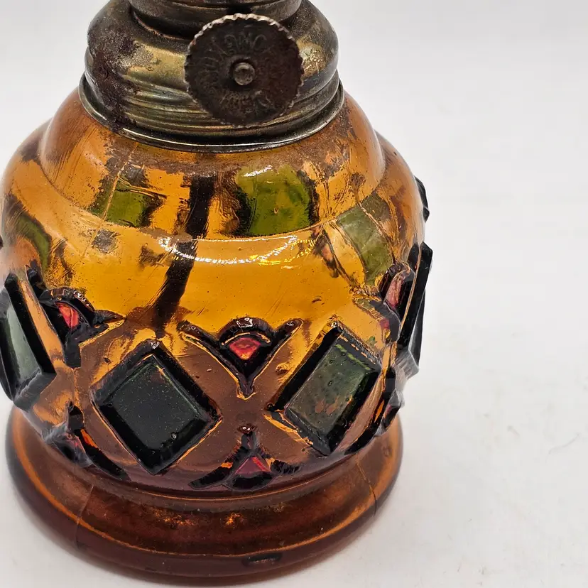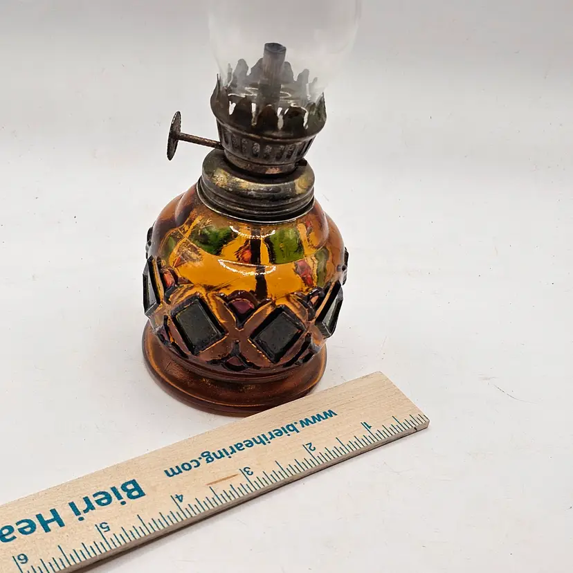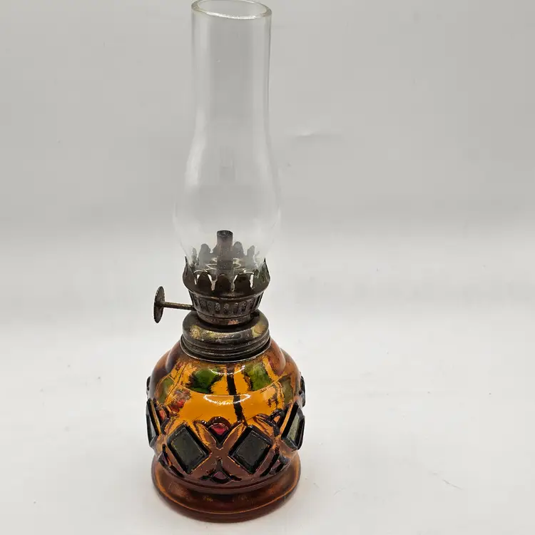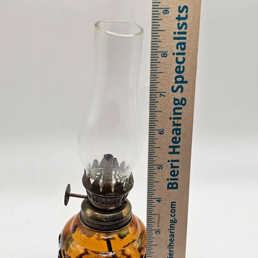 Vintage oil lamp 8.5" amber colorful base made in Hong Kong Glass