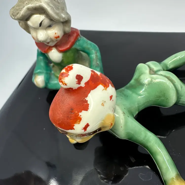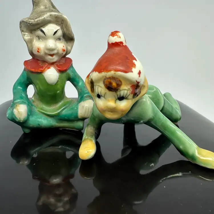 Laying 4.25” and sitting is 3” tall - has some paint loss no chips or cracks