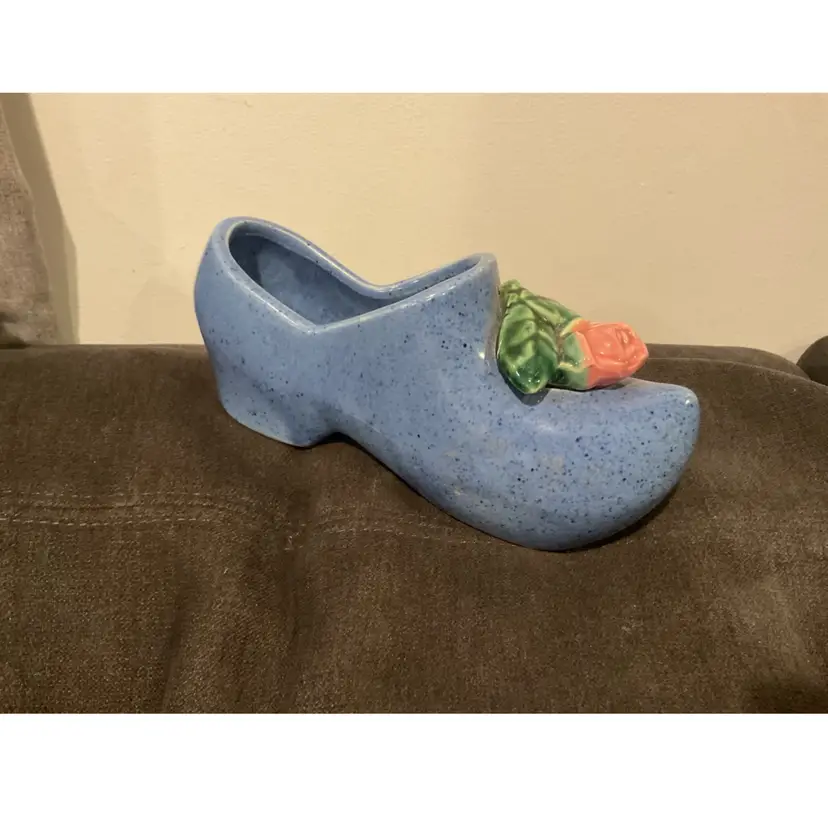 Vintage planter - McCoy Dutch shoe w/rose - blue