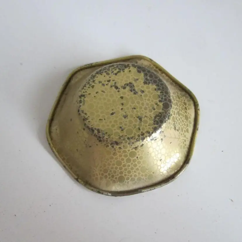 Vintage Planter's Peanuts mini tin bowl. It measures 3" across. It does have wear as shown in photos. This would be fun to use in a man cave bar too.