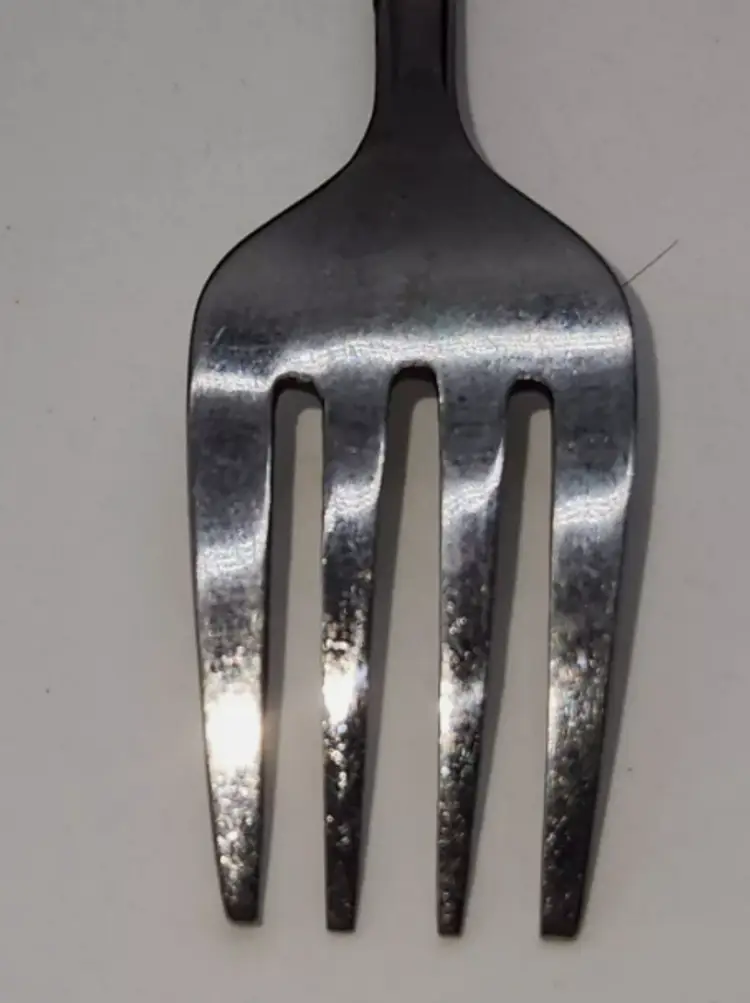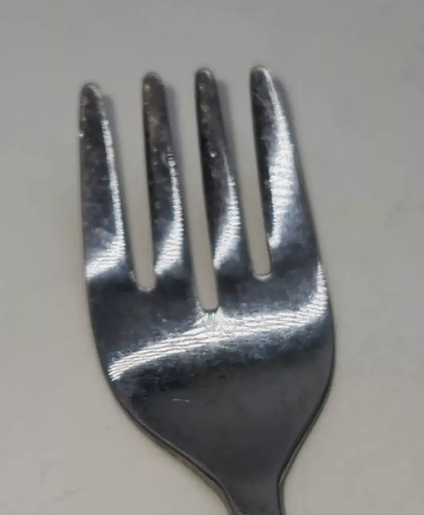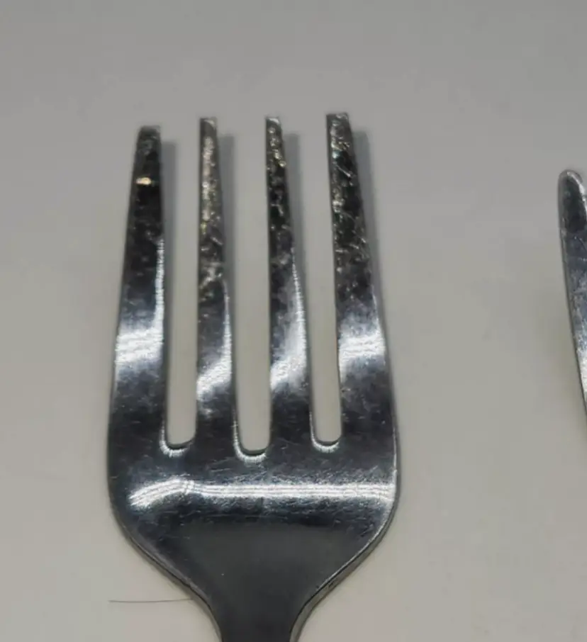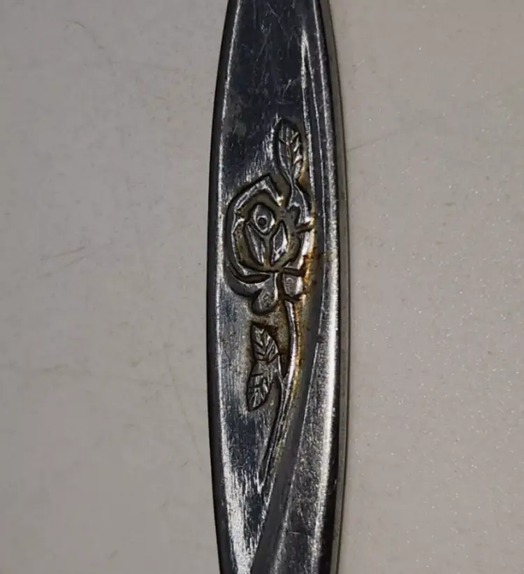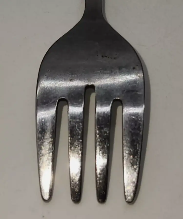 Pictures are part of my description with measurements. These were from my toddler years over 40 years ago One fork measure 5 inches in length and the other is 4.5 inches in length. Both are owned by me since 1980s. Does have wear marks from use. One is undecorated with Sanitoy, Taiwan & stainless steel on the back and the other has no makers mark, just marked stainless steel and with a rose on the front handle.